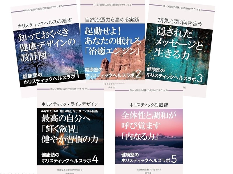 【シリーズ1:ホリスティックヘルスの基本】 【シリーズ2:自然治癒力を高める実践 起動せよ!】 【シリーズ3:病気と深く向き合う 隠されたメッセージと生きる力】 【シリーズ4:ホリスティック・ライフデザイン】 【シリーズ5:ホリスティックな叡智】 |