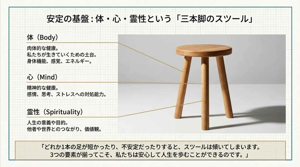 心身一如の考え方: 心と体は密接に繋がっているという考えに基づき、心身のバランスを重視した生活を送ることができます。